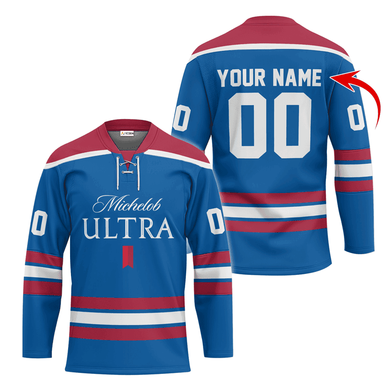 Personalized Michelob ULTRA Blue Lace Hockey Jersey
