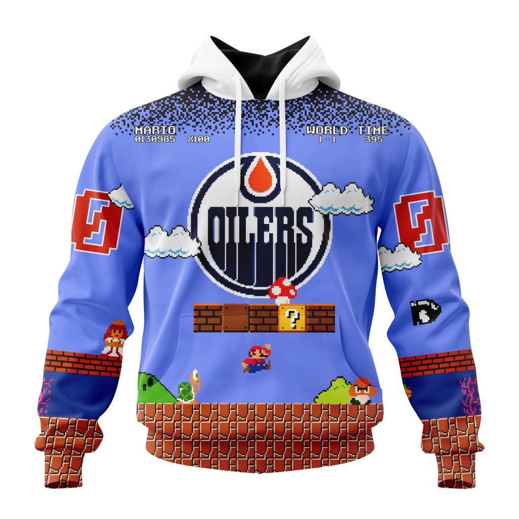 Personalized NHL Edmonton Oilers With Super Mario Game Design Unisex Pullover Hoodie