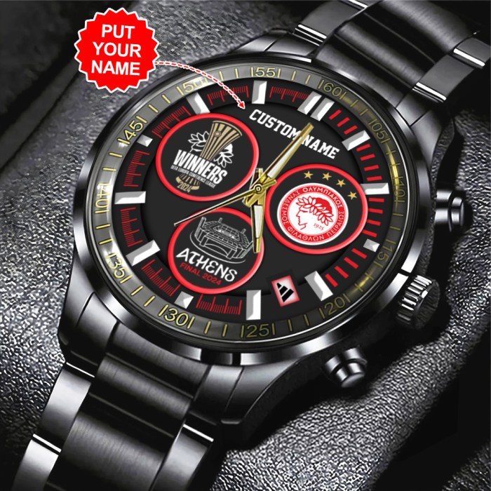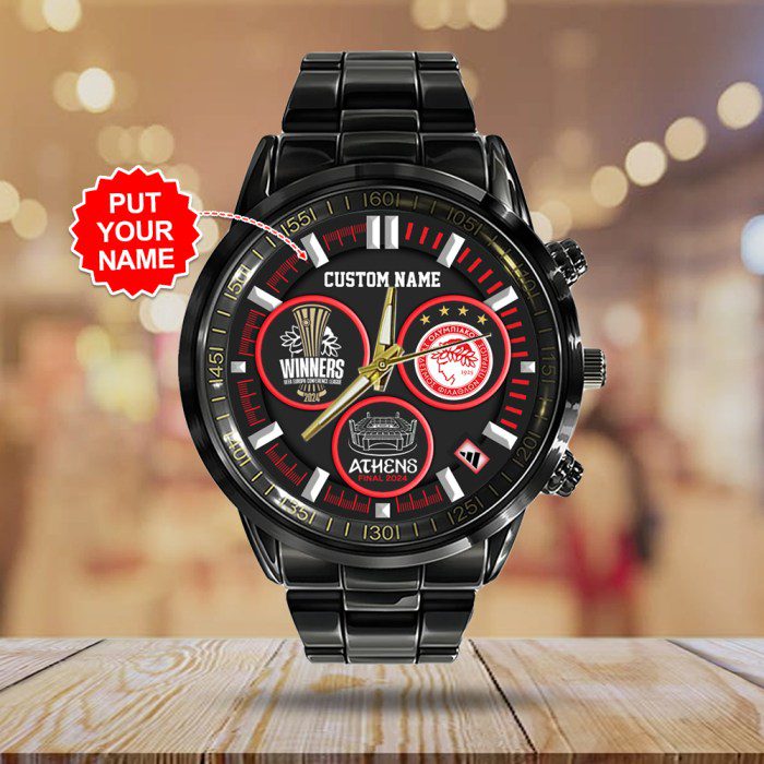 Personalized Olympiakos F.C. Black Stainless Steel Watch GSW1066