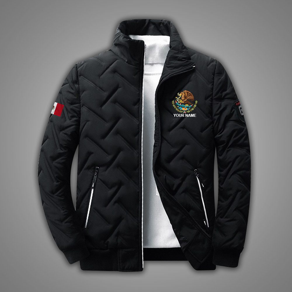 Personalized Quilted Jacket With Unique Eagle Design Padded Jacket Stand Collar Coats
