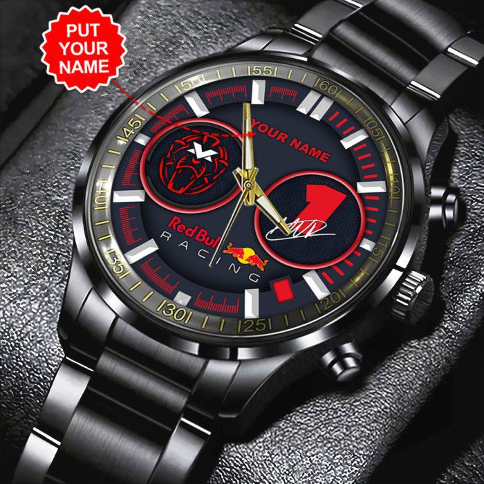 Personalized Red Bull Racing F1 x Max Verstappen Black Stainless Steel Watch GSW1015