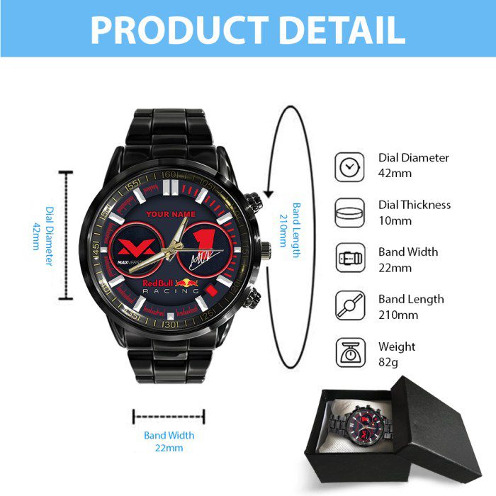 Personalized Red Bull Racing F1 x Max Verstappen Black Stainless Steel Watch GSW1024