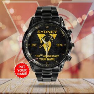 Personalized Sydney Swans Black Stainless Steel Watch GSW1185