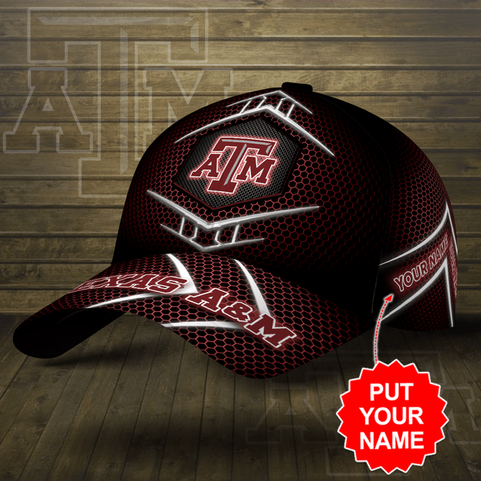 Personalized Texas A&M Aggies Beehive Hexagon Pattern 3D Baseball Cap – Black Red CGI2068