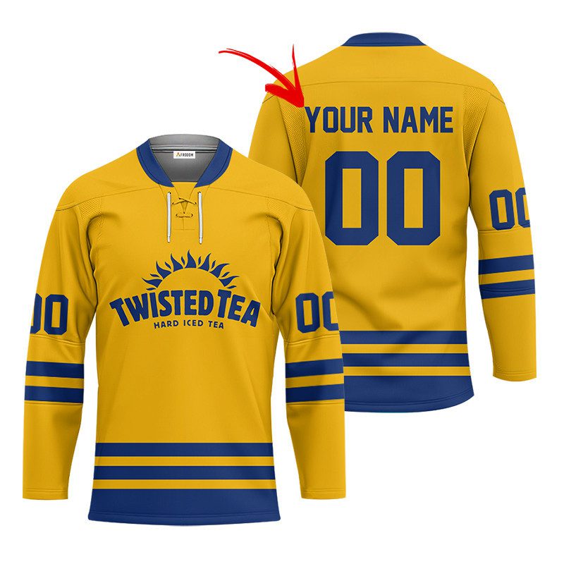 Personalized Twisted Tea Yellow Retro Lace Hockey Jersey