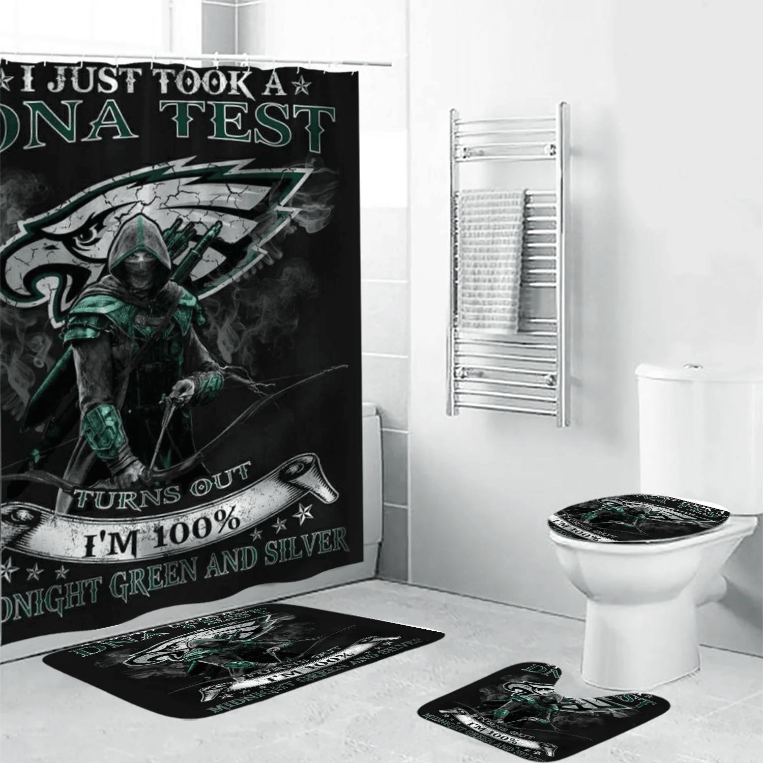 Philadelphia Eagles 100 DNA Test Waterproof Shower Curtain Non-Slip Toilet Lid Cover Bath Mat Bathroom Set BRS2573