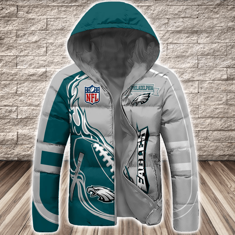 Philadelphia Eagles NFL 3D Custom Name Down Filled Coat DFC009