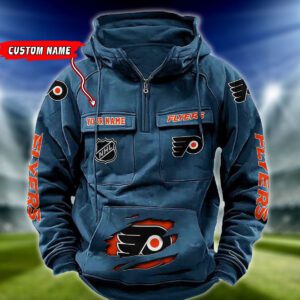 Philadelphia Flyers NHL Hockey Vintage Quarter Zip Hoodie Retro Hoodie Custom Name WRH1020