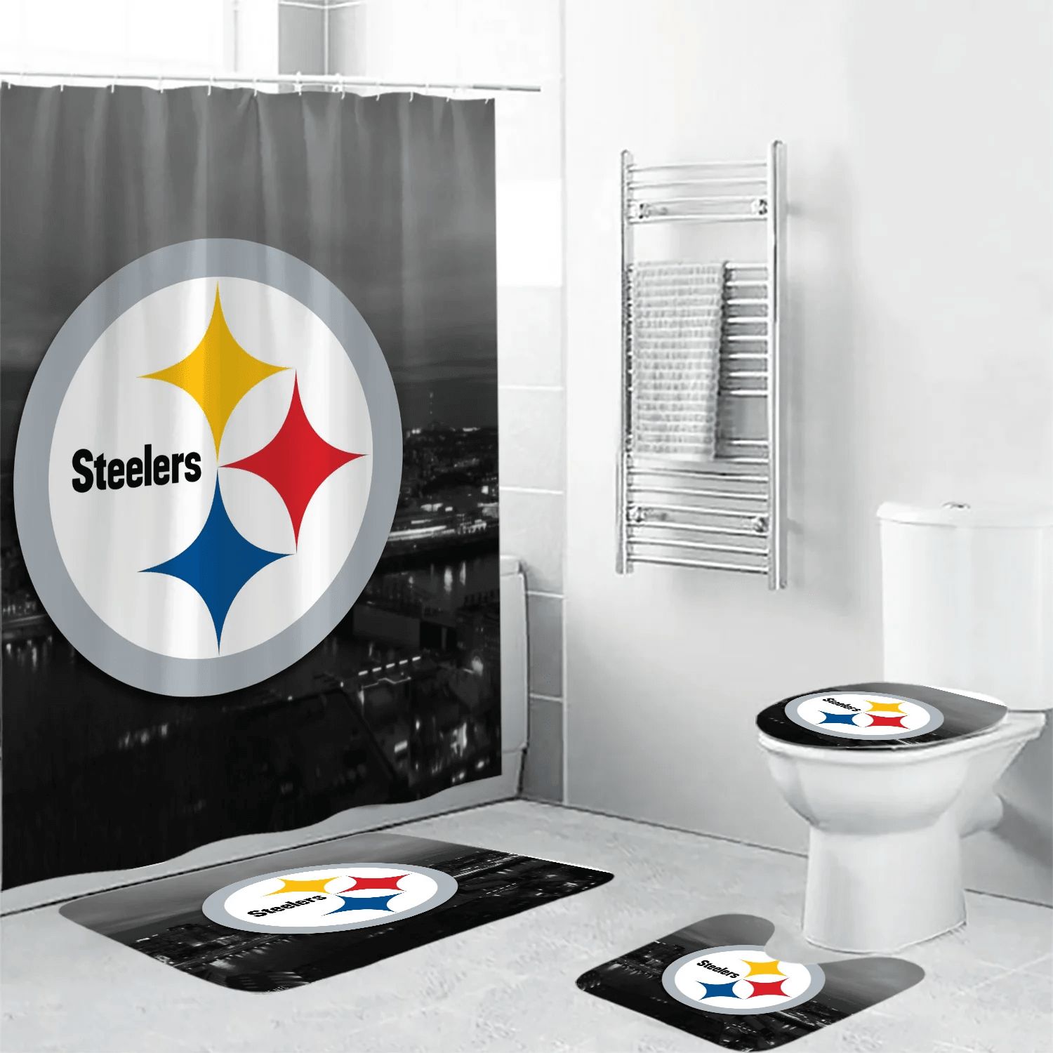 Pittsburgh Steelers City Shower Curtain Non-Slip Toilet Lid Cover Bath Mat Bathroom Set BRS2020