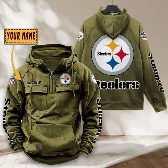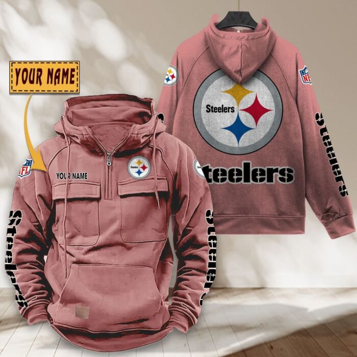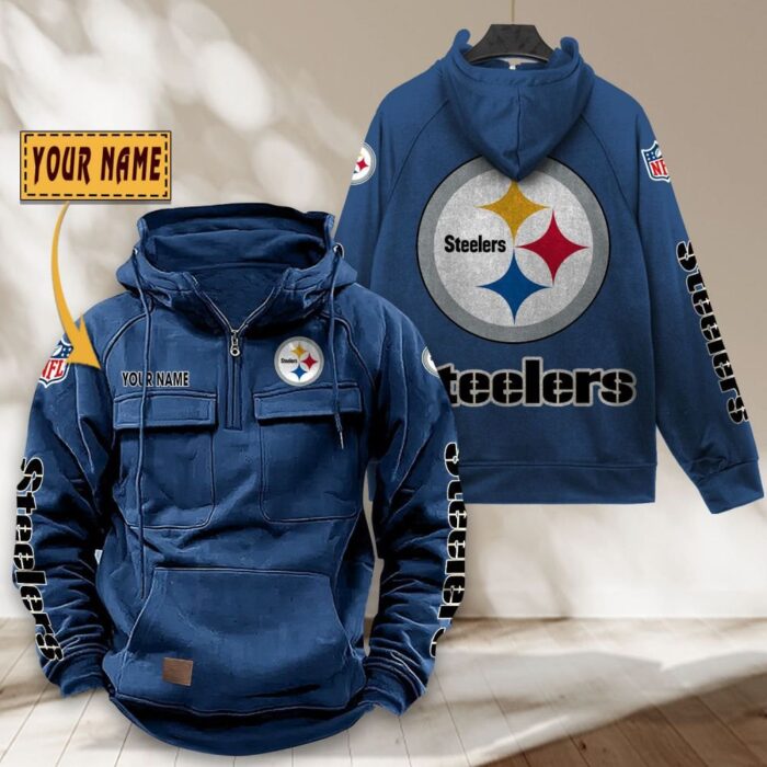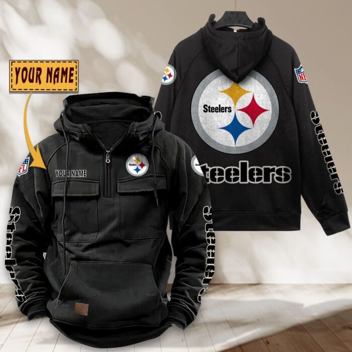 Pittsburgh Steelers NFL Personalized Multi Pocket Quarter Zip Vintage Hoodie WVH1059