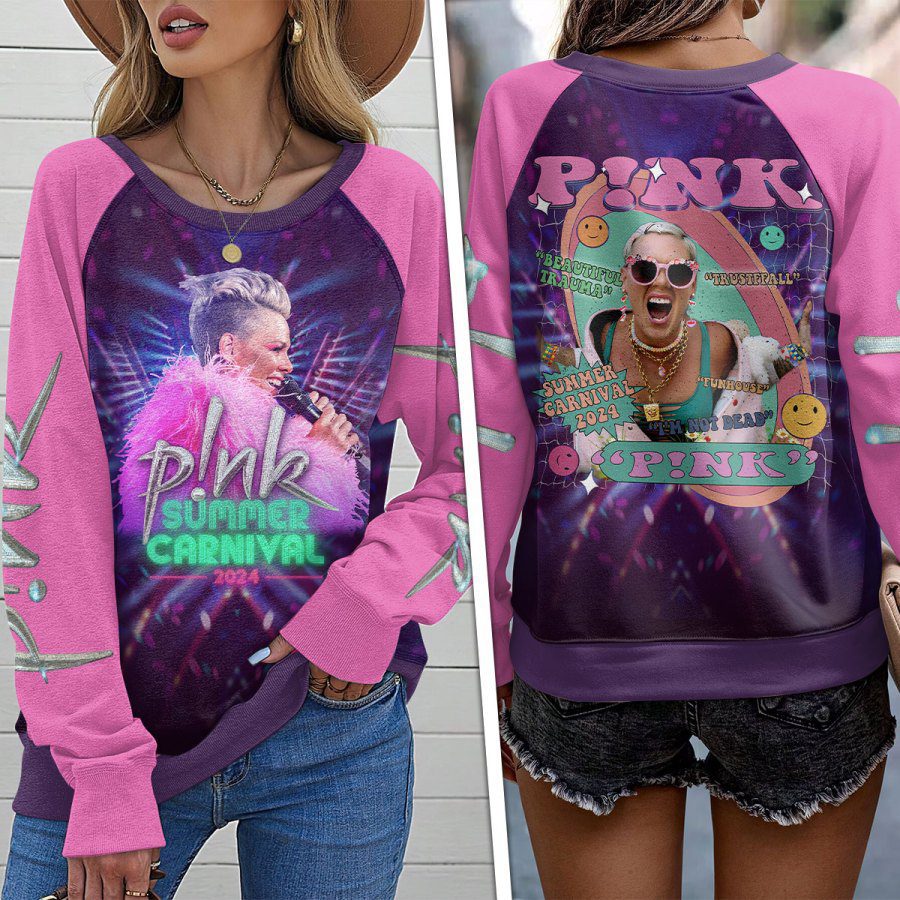 P!nk Round Neck Raglan Sleeve Sweatshirt GRS1015