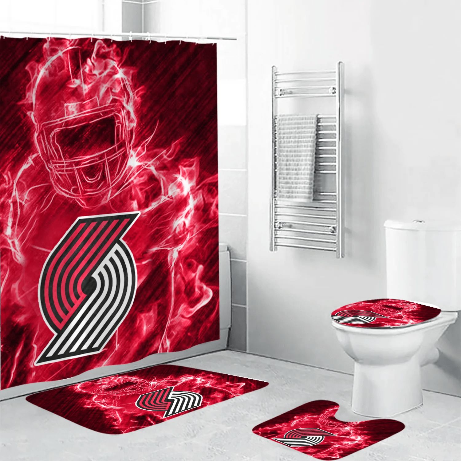 Portland Trail Blazers Legend Shower Curtain Non-Slip Toilet Lid Cover Bath Mat Bathroom Set BRS2017