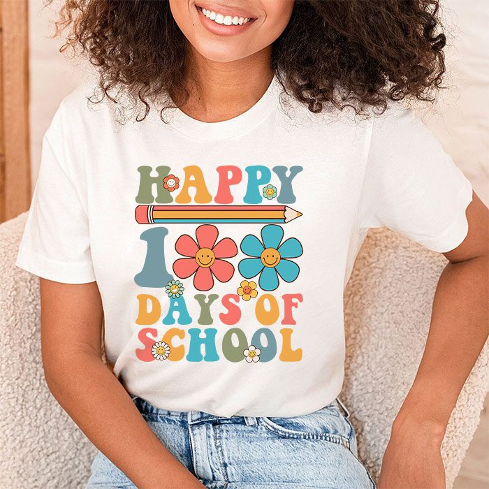Retro 100 Days of School Teachers Kids Groovy 100th Day Unisex T-Shirt TH1002