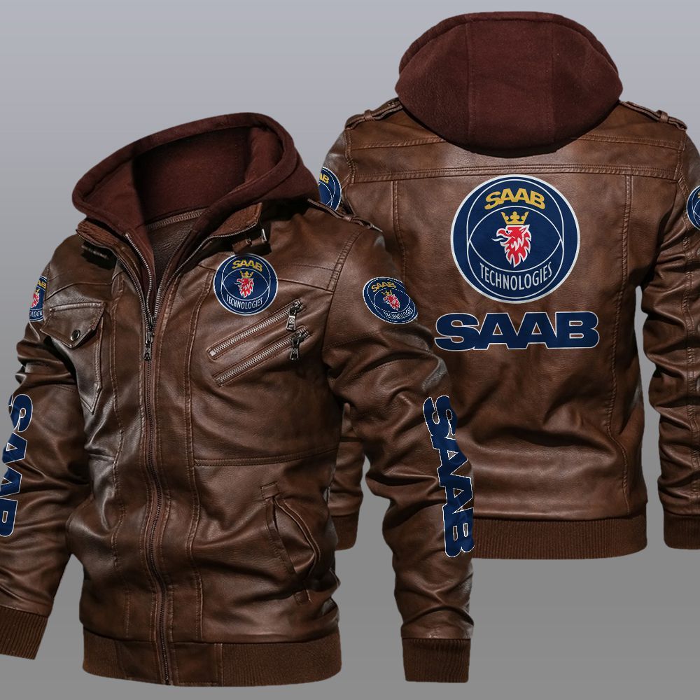 Saab Automobile Black Brown Leather Jacket LIZ083