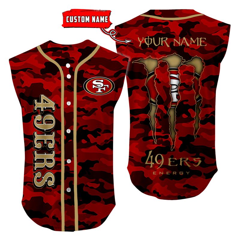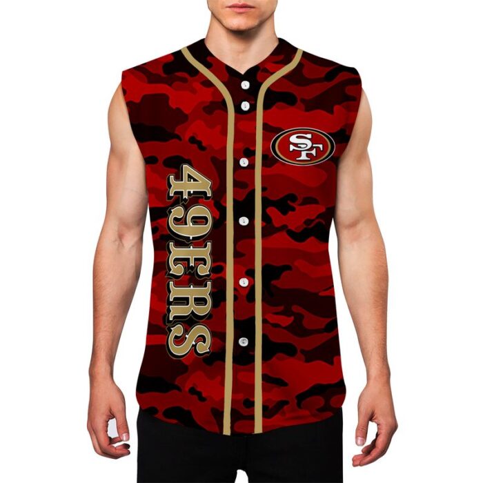 San Francisco 49ers Camo Sleeveless Baseball Jersey Tank Top Custom Name BBTJ1092