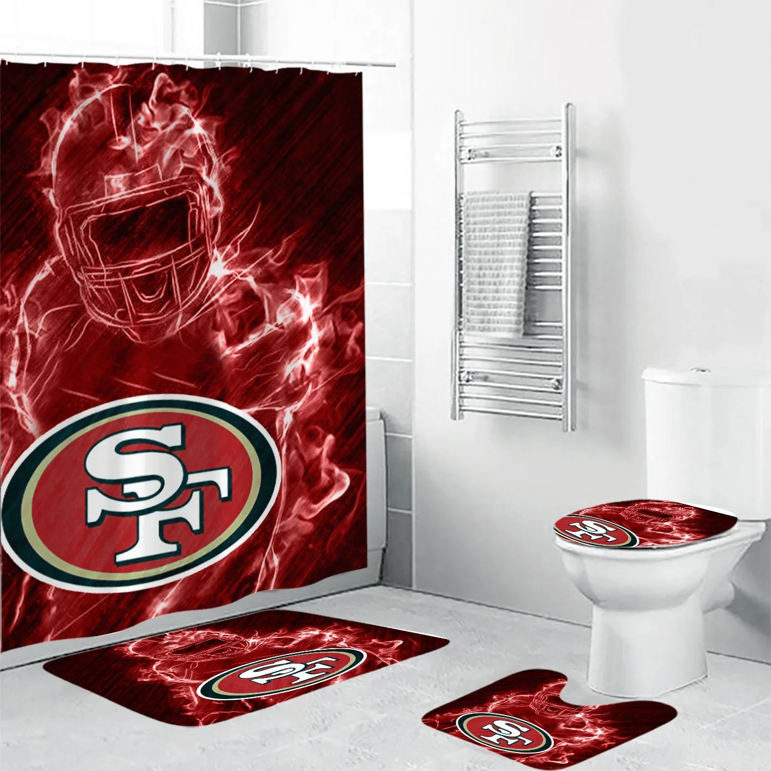 San Francisco 49ers Legend Waterproof Shower Curtain Non-Slip Toilet Lid Cover Bath Mat Bathroom Set BRS2018