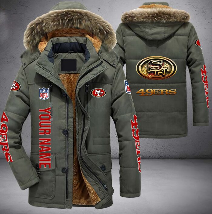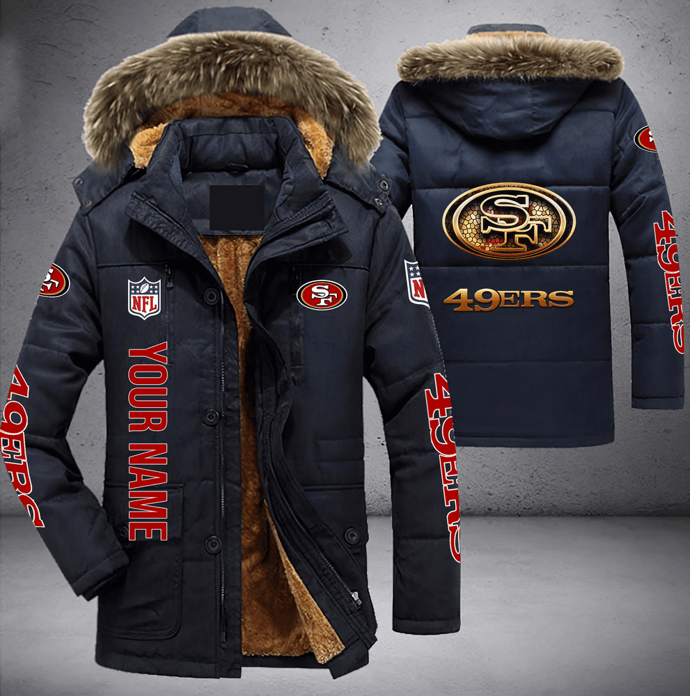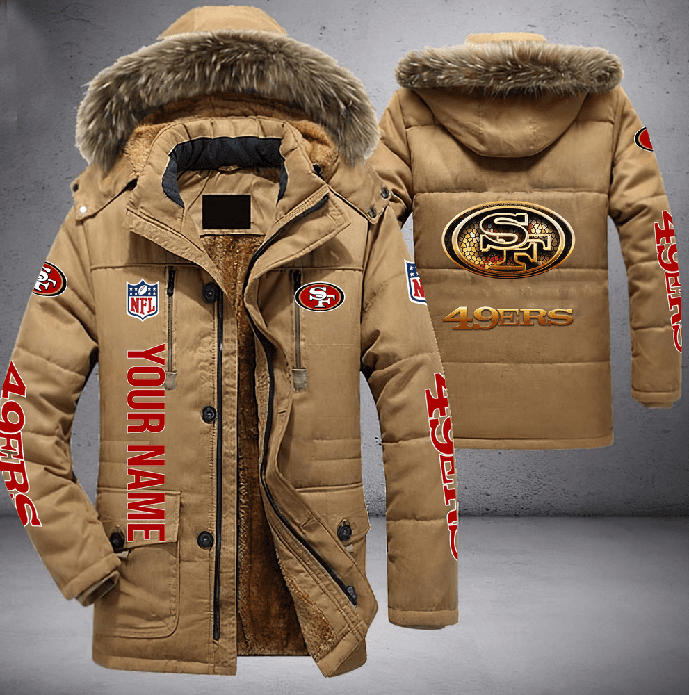 San Francisco 49Ers NFL Personalized Golden Logo Parka Jacket Fleece Coat Winter