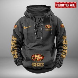 San Francisco 49ers NFL Personalized Swoosh Hooded Lace Up Hoodie Vintage Retro Hoodie