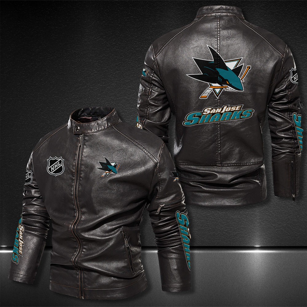 San Jose Sharks Motor Collar Leather Jacket For Biker Racer