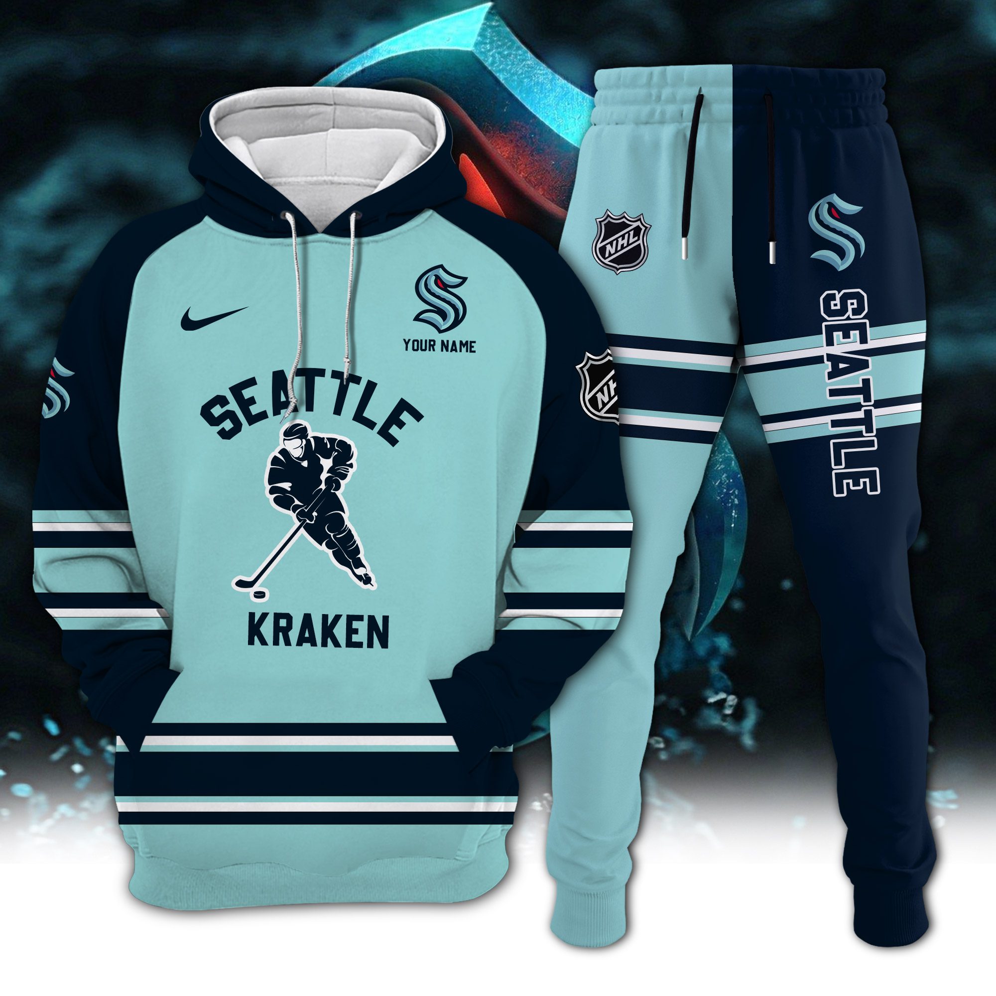 Seattle Kraken Combo Hoodie Long Pants Set Edition 3D CHJ1624