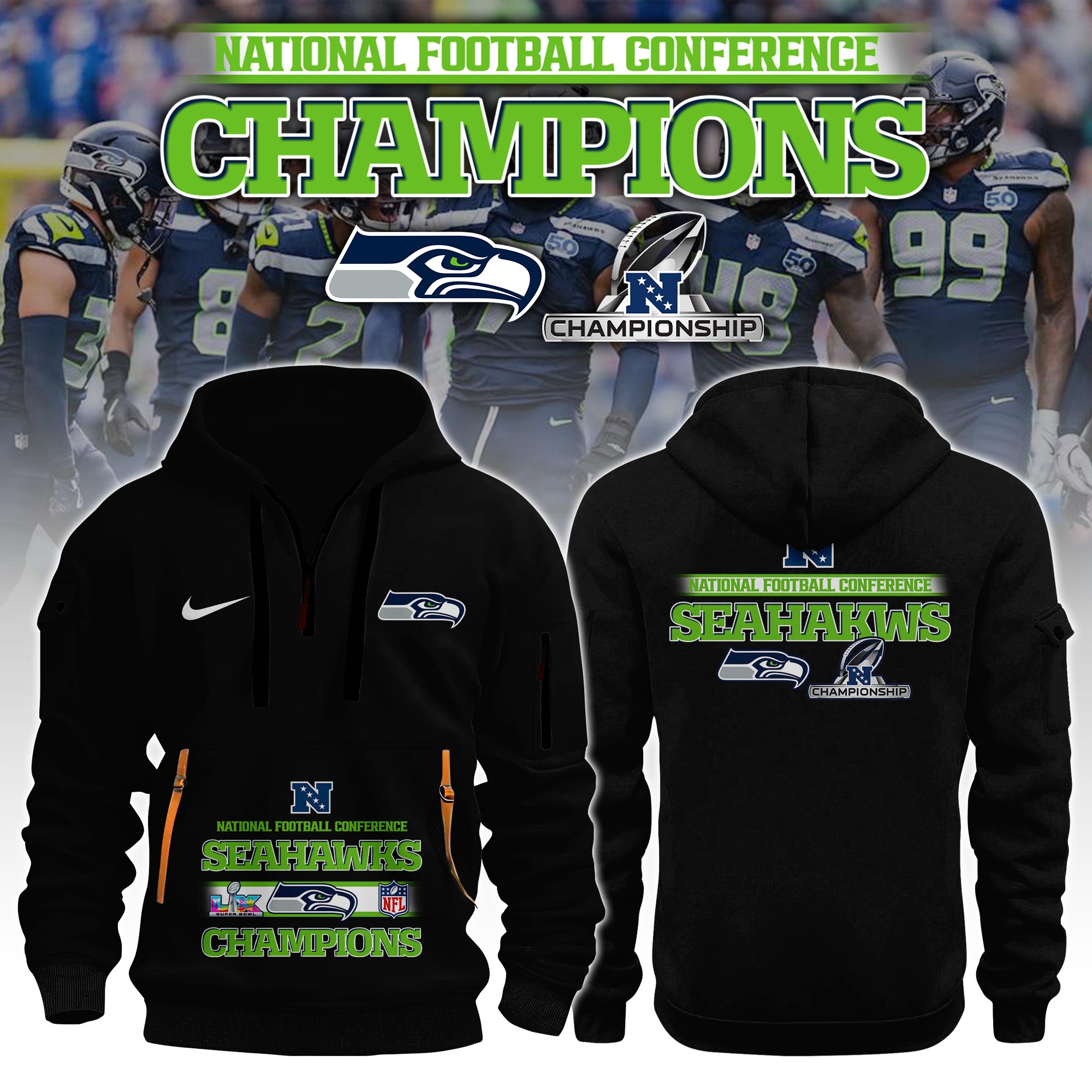 Seattle Seahawks NFC Champions 2026/27 Quarter Zip Hoodie SPBLX20262