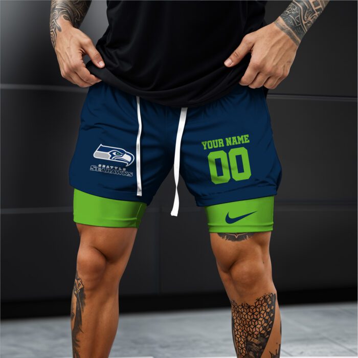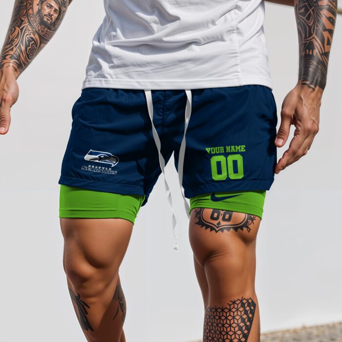 Seattle Seahawks NFL Double Layer Shorts Custom Your Name And Number WDS1061
