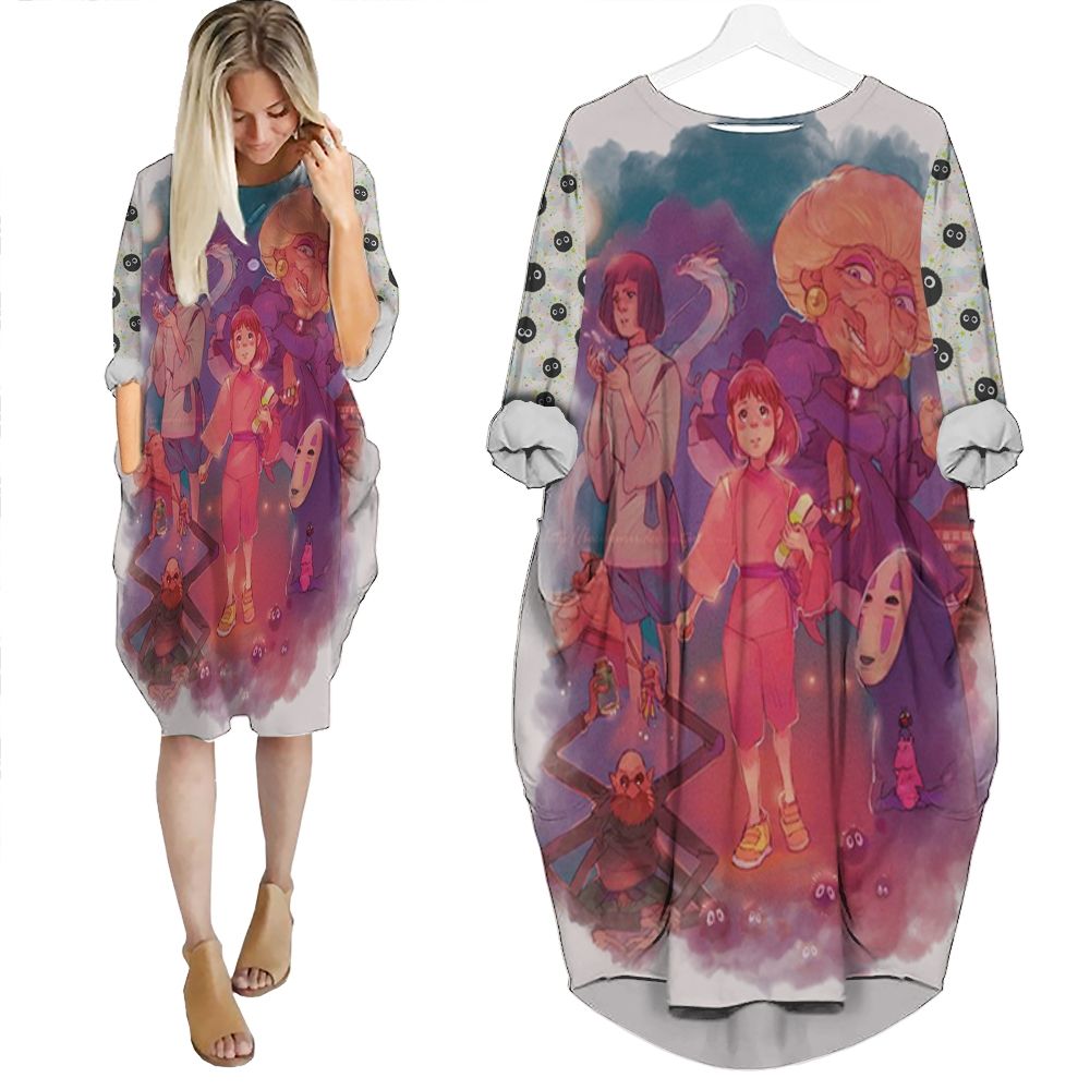 Spirited Away Main Characters In One Studio Ghibli For Anime Fan Batwing Pocket Dress PD2457