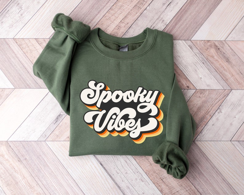 Spooky Vibes Sweatshirt Retro Halloween Sweatshirt Spooky Funny