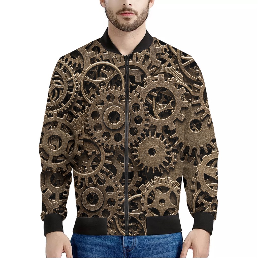 Steampunk Brass Gears And Cogs Print Bomber Jacket