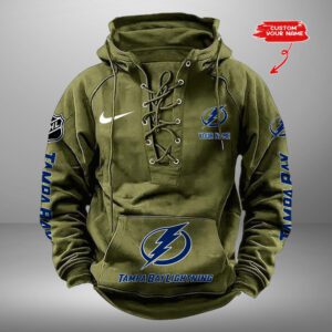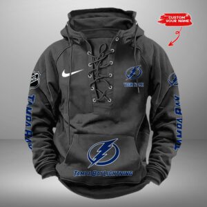 Tampa Bay Lightning NHL Swoosh Hooded Lace Up Retro Vintage Hoodie Custom Name