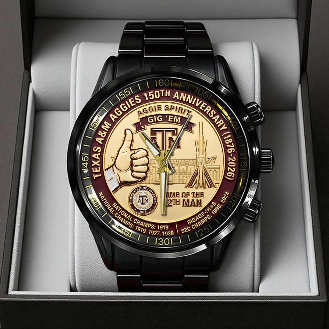 Texas A&M Aggies Football 150th Anniversary 2026 Black Stainless Steel Watch SPM1048