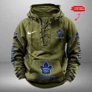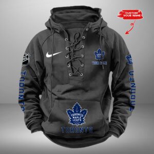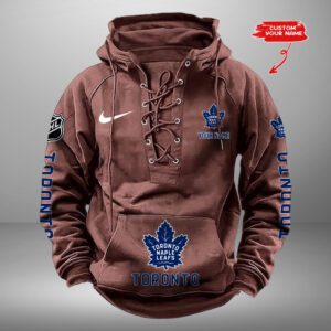 Toronto Maple Leafs NHL Swoosh Hooded Lace Up Retro Vintage Hoodie Custom Name