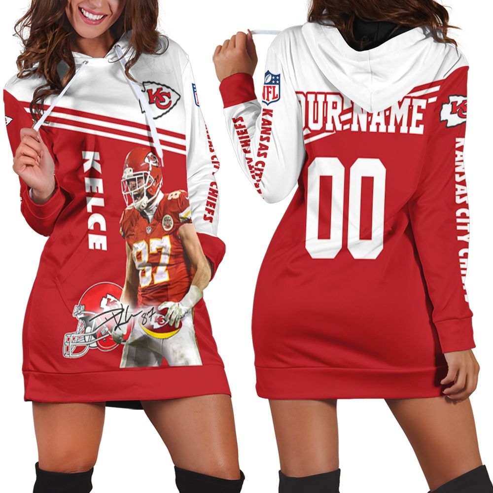Travis Kelce Kansas City Chiefs 3D Signature Personalized Hoodie Dress HD3688