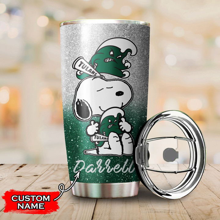Tulane Green Wave Snoopy Custom Name Tumbler TB1656