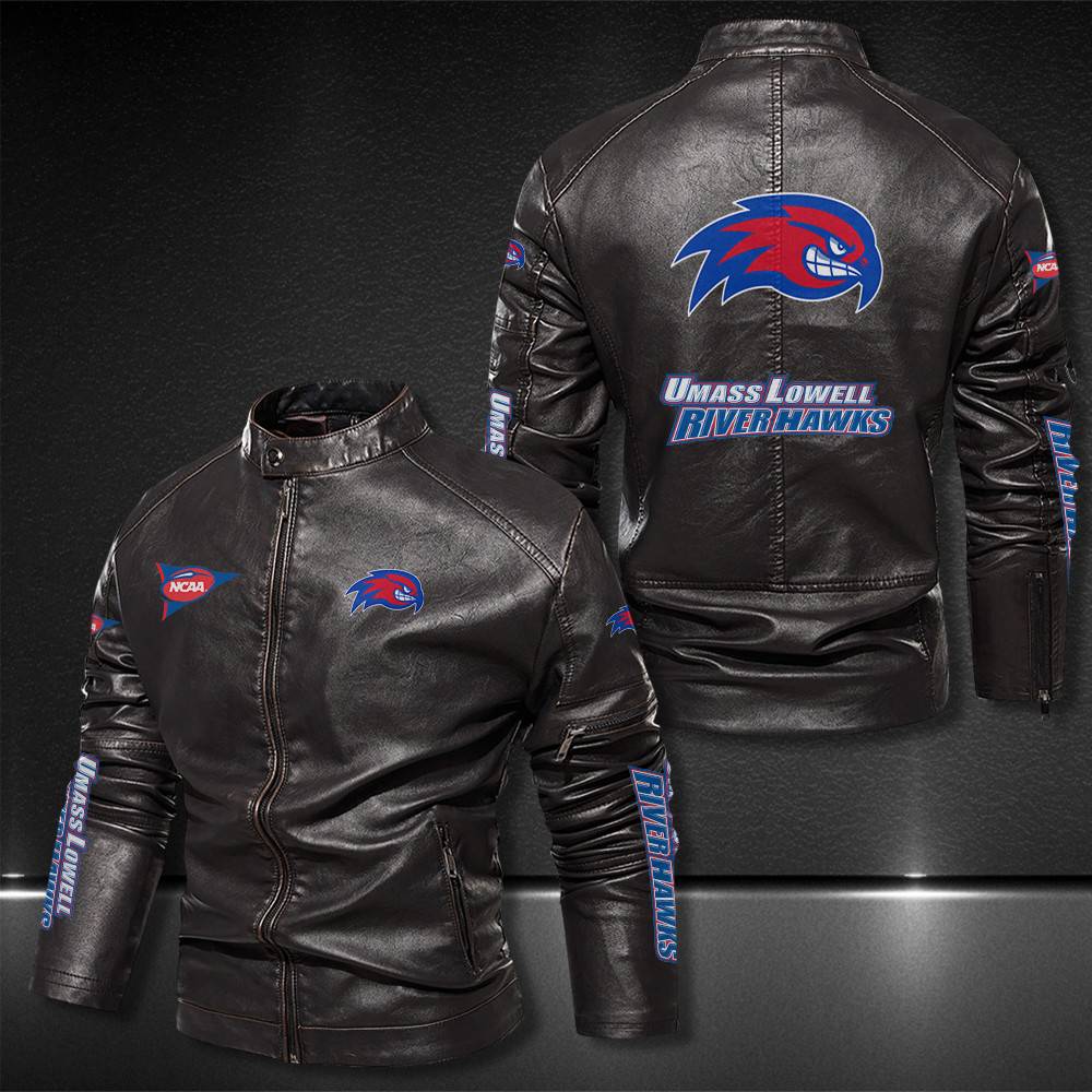 Umass Lowell River Hawks Motor Collar Leather Jacket For Biker Racer