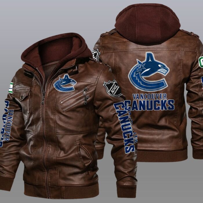 Vancouver Canucks Black Brown Leather Jacket LIZ133