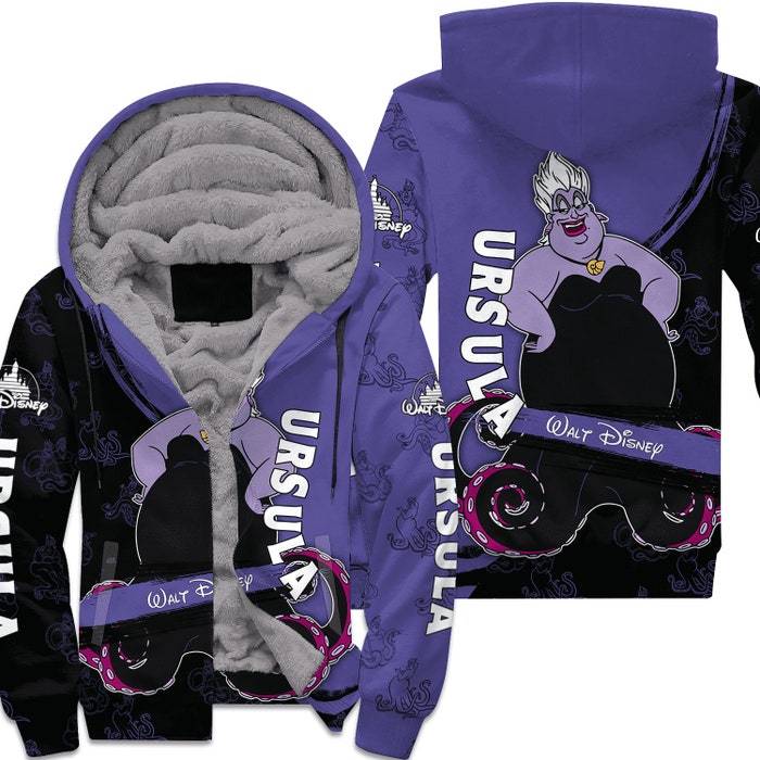 Villian Ursula Purple Black Pattern Stripes Disney Fleece Pullover Zipped Up Unisex Hoodie