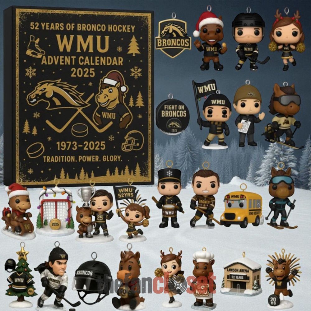 Western Michigan Broncos Men’s Ice Hockey 52nd Anniversary Advent Calendar Acrylic Hanging Decor Box