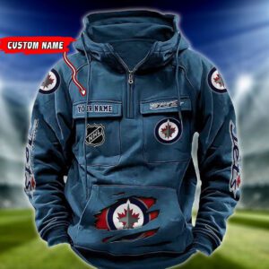 Winnipeg Jets NHL Hockey Vintage Quarter Zip Hoodie Retro Hoodie Custom Name WRH1030