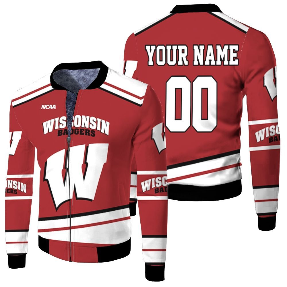 Wisconsin Badgers Ncaa Mascot Red 3D Personalized Fleece Bomber Jacket FBJ0695
