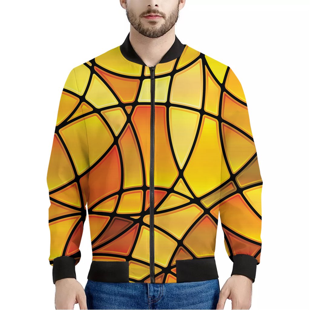 Yellow Stained Glass Mosaic Print Bomber Jacket