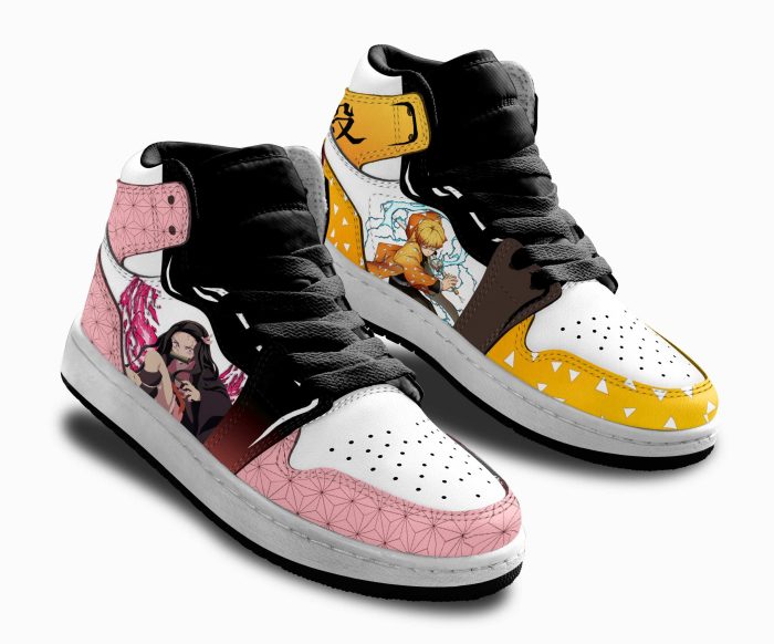 Zenitsu and Nezuko Kids Sneakers Custom Anime Demon Slayer Kids Jordan 1 Shoes